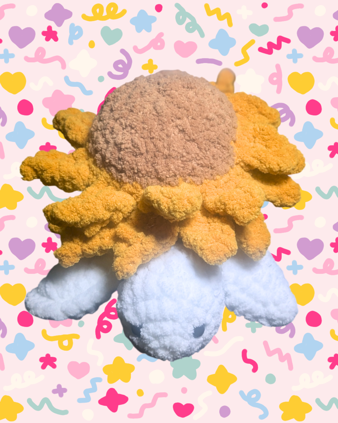 Say hello to your new squishy sidekick! The Sunflower Turtle Cutie is a hand-crocheted plushie made with ultra-soft chenille yarn, designed for maximum snuggles and smiles. Featuring a plush turtle body and a sun flower-inspired shell, this little friend brings a gentle, whimsical charm to any space.